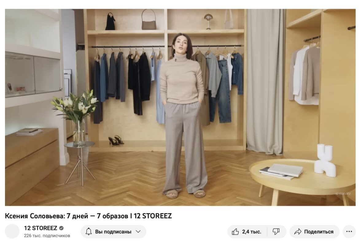 Бренд одежды продвигает свои коллекции на Youtube-канале, у которого 225 тыс. подписчиков. Здесь подбирают образы, рассказывают про историю моды и создание компании. Это стильные ролики и красивая картинка, что в сфере моды особенно важно. Каждый год 12 STOREEZ снимает 12 историй. В них показывается 12 небольших капсул, из которых получается цельный гардероб.
