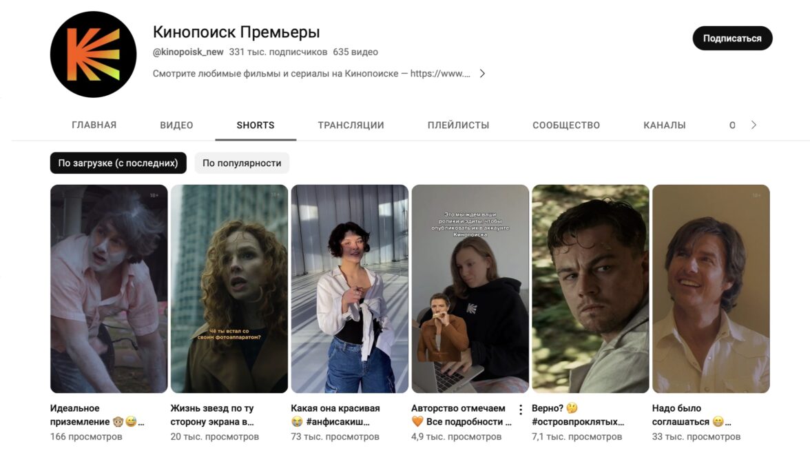 Онлайн-кинотеатры не упускают тренд на вертикальные видео и используют их в продвижении своего контента. Так на канале «Кинопоиск. Премьеры» в разделе SHORTS публикуются яркие моменты из свежих фильмов и сериалов. Это интригует пользователей, которые хотят посмотреть полную версию и оформляют подписку на сервис.