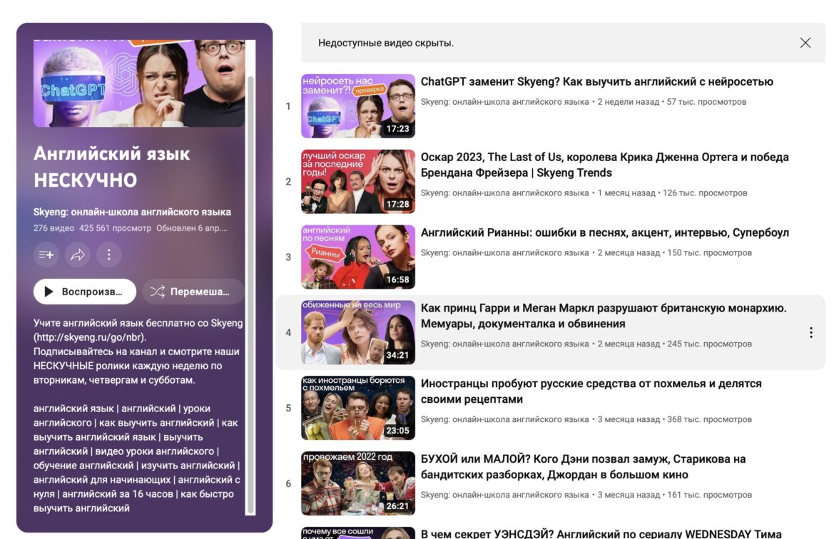 Школа изучения английского языка публикует десятки роликов — полезный и развлекательный контент на своём Youtube-канале с объяснением иностранных слов, грамматики и культурных явлений.