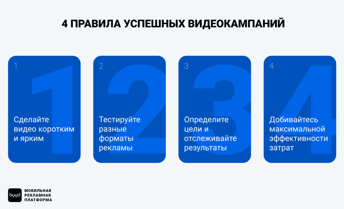 Эти данные подтверждают эффективность видеорекламы. Но перед запуском своей первой кампании важно учесть несколько советов. AdRoll выделил 4 ключевых рекомендации, которые помогут успешно продвигать видео в in-app.