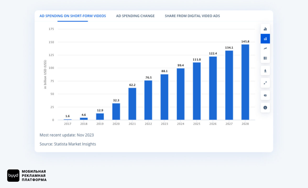 Данные Statista подтверждают эту тенденцию: в 2024 году основной бюджет будет выделяться на короткие видеоролики. Команда BYYD активно использует этот подход, понимая важность мгновенного захвата внимания.