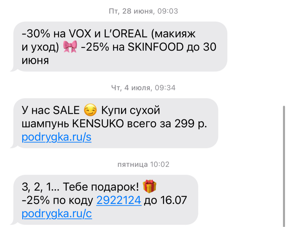 Отправка пользователям рекламных сообщений от вашего бренда через разные каналы коммуникации: SMS, Push, эмайл и в мессенджеры. Через рассылки компании рассказывают о новых продуктах, скидках и акциях, проводят конкурсы и интерактивы, приглашают клиентов на мероприятия.