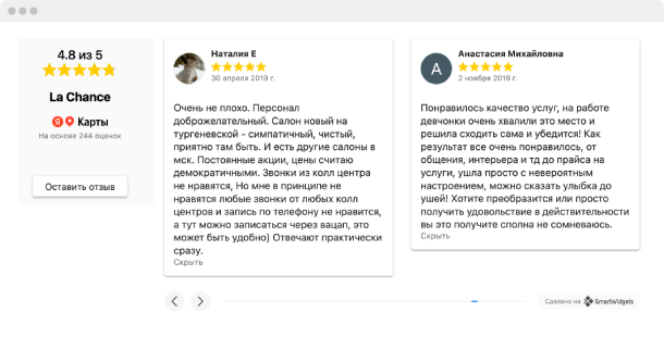 Плагин отзывов с Яндекс.Маркета от SmartWidgets — это способ рассказать о себе словами клиентов. Честными, живыми, настоящими.