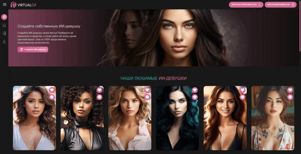 5. AI Girlfriends. Платформа-витрина с множеством персонажей под формат virtual girlfriend и виртуальные чаты для взрослых. Можно настроить виртуальный чат бот с девушкой под себя: от мягкого романтика до страстный чат компаньон с насыщенной перепиской вирт. Подходит тем, кто любит экспериментировать с образами, держать несколько историй параллельно и подбирать лучший вирт под текущее настроение.