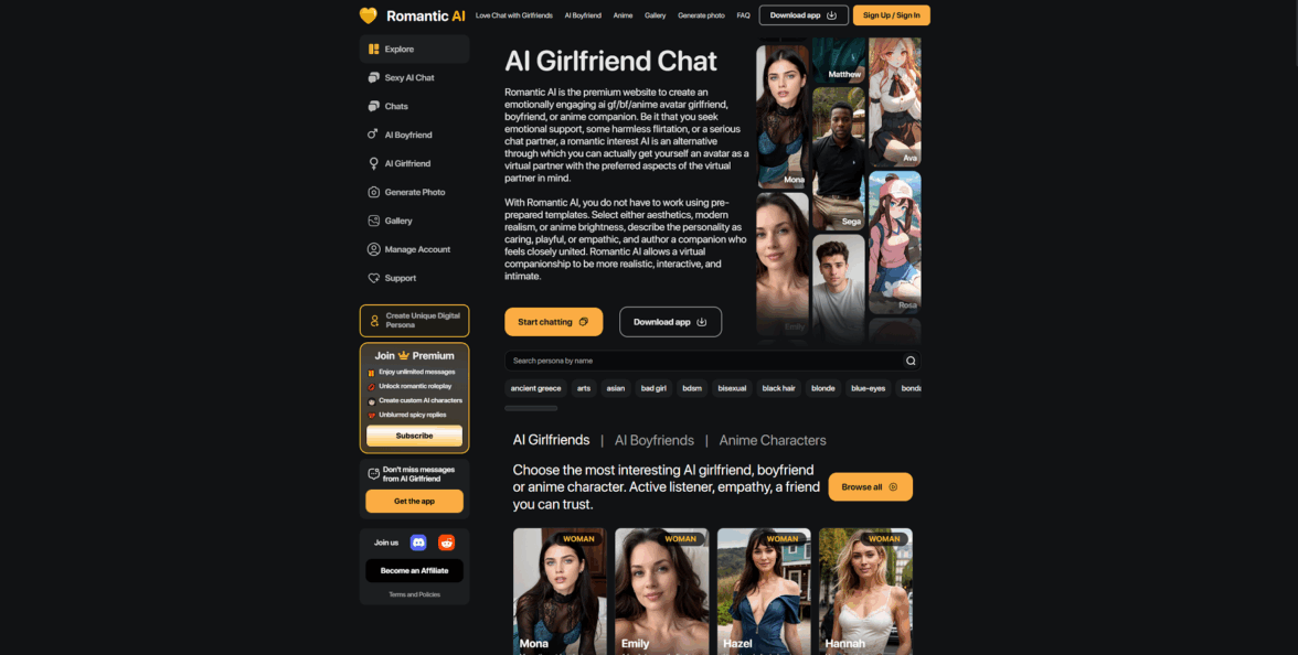 AI Girlfriends собрал вокруг себя много разных персонажей под формат виртуальные чаты для взрослых. Здесь легко настроить виртуальный чат бот с девушкой под свои предпочтения: от мягкого романтика до страстный чат компаньон с более насыщенной лексикой. Система напоминает simulation girlfriend chat, где каждый образ можно докрутить до нужного темперамента.