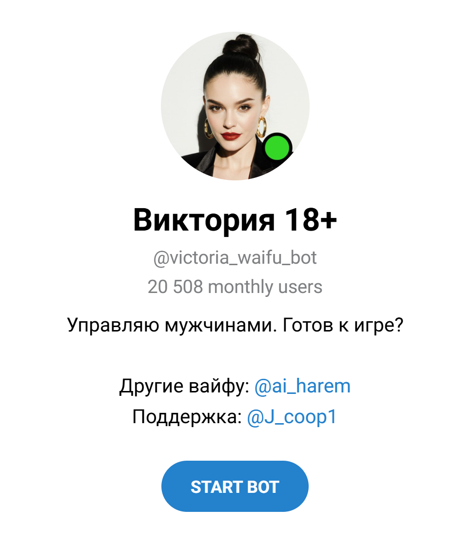 Виктория 18 плюс ощущается как один ярко проработанный персонаж, а не каталог. Виртуальная переписка здесь строится вокруг одной героини, которая ведет себя как теплый, немного кокетливый виртуальный любимый собеседник. Формат напоминает чат ai с виртуальной девушкой, где акцент на эмоциональной поддержке и мягком флирте.