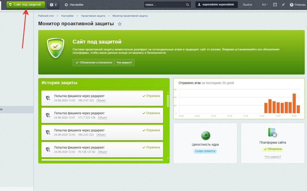 С проактивной защитой «1С-Битрикс» работаем следующим образом: