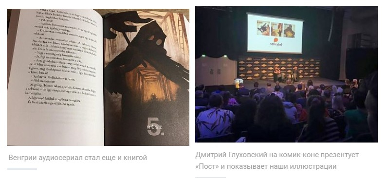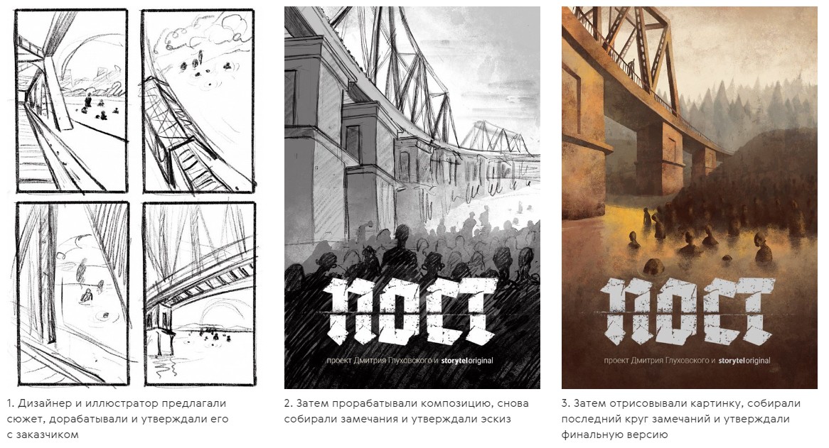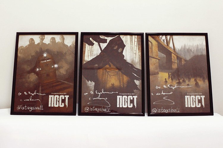 После запуска «Поста» все иллюстрации ушли в работу. Сейчас это обложки для сериала в 9 странах, иллюстрации для печатной книги, которая вышла на венгерском языке, толстовки, буклеты, открытки и другой мерч проекта. Большие плакаты, под которыми Глуховский сидел на Comic Con в Швеции и презентовал «Пост» — это тоже наши иллюстрации.