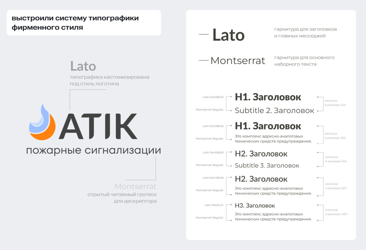 Для названия бренда используется шрифт Lato, выбранный как основной корпоративный — он отражает технологичный и современный характер компании, а его геометричность подчеркивает производственную направленность. Типографику мы кастомизировали, чтобы визуально она перекликалась с плавными линиями графического элемента.