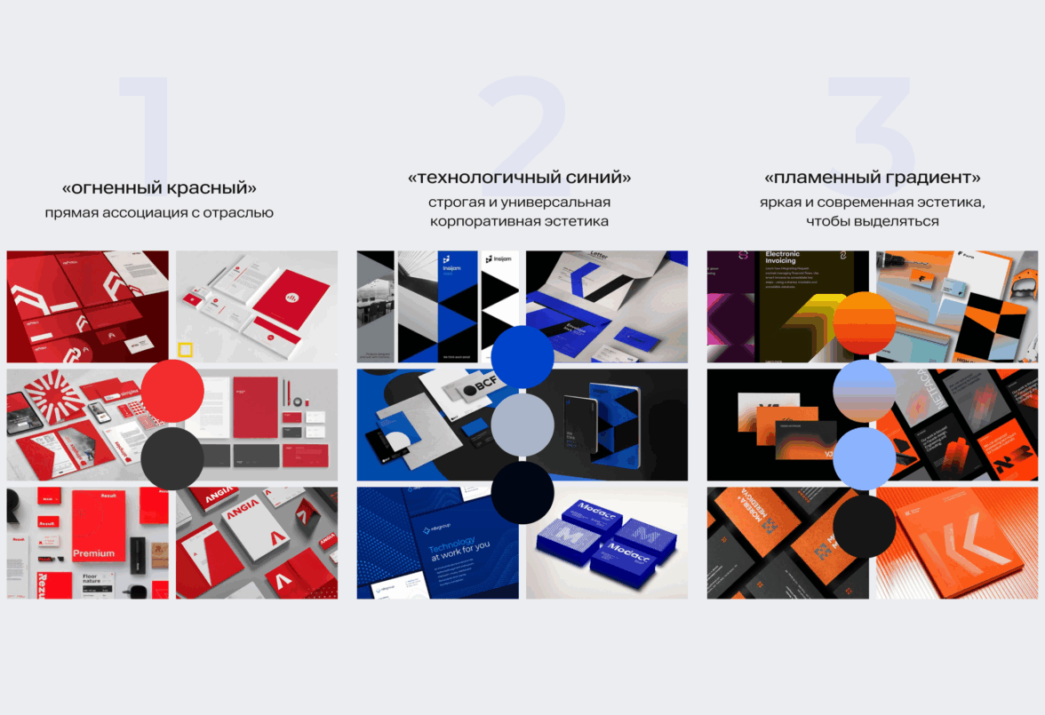 В качестве отправной точки разработали и презентовали три принципиально разные концепции фирменного стиля — от корпоративного звучания до более смелого и современного. Каждая из них по-своему раскрывает характер бренда и отражает специфику его деятельности.