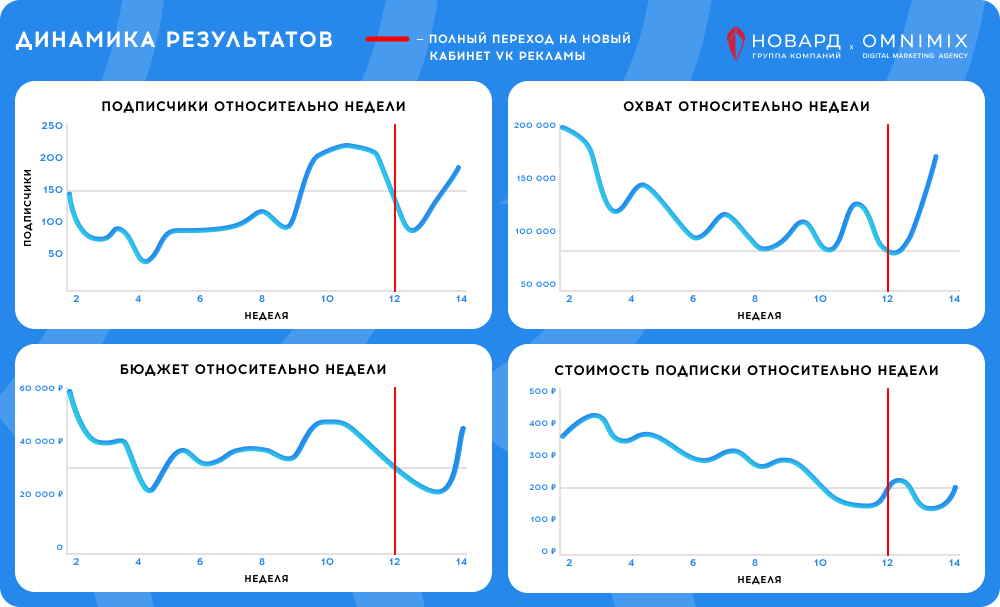 Главный результат — на текущий момент стоимость подписчика в новом кабинете VK в 2 раза ниже прежней.