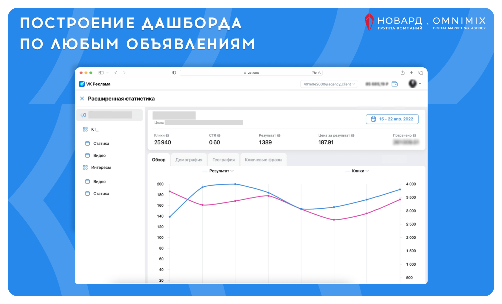 Автоматизированная и подробная статистика. В новом кабинете стало возможным мониторить статистику сразу всех кампаний в разрезе пола, возраста, регионов и ключей. По метрикам (например, по лидам и CPL) можно выяснить, кто ваша аудитория и ее географию.