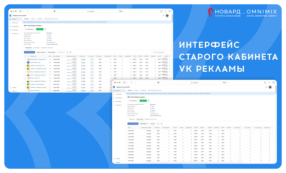 В VK Рекламе появилось дополнительное звено «Группа объявлений». Наши специалисты быстро адаптировались в новом кабинете и уверены, что оптимизация кампаний станет эффективнее, когда будут проведены все технические доработки по настройке и отслеживанию.