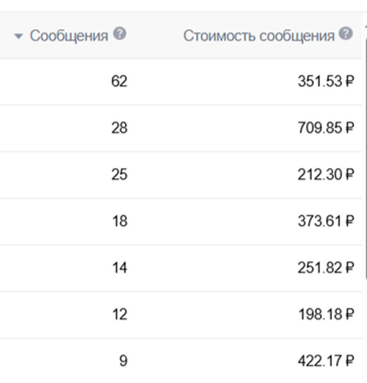 Из начатого диалога в номер телефона 61%, получили 126 номеров. Цена за номер 714 руб.