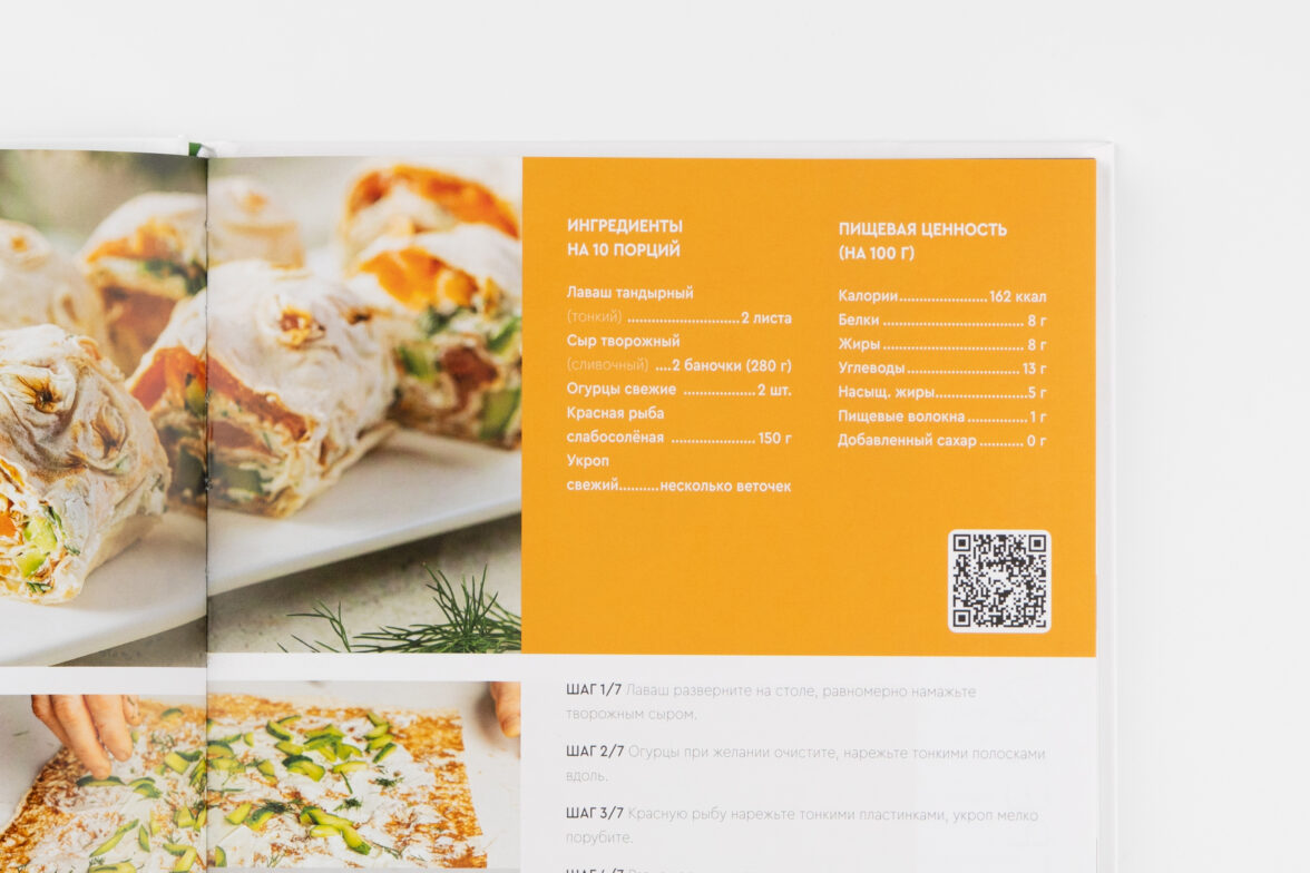 Одним из плюсов книги «Точно готовим!» является то, что каждый рецепт сопровождается QR-кодом. При сканировании которого читатель моментально окажется на странице с автоматически собранной продуктовой корзиной в бесплатной доставке ВкусВилл. Это удобное решение позволит сэкономить время, избавляя от необходимости заниматься закупкой ингредиентов.
