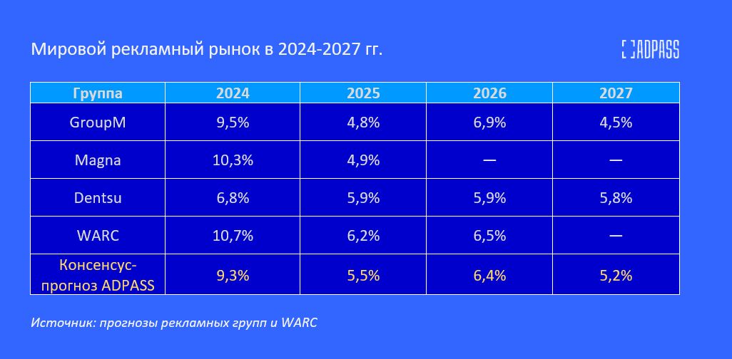 Состояние мирового рынка рекламы в 2024-2027 гг.