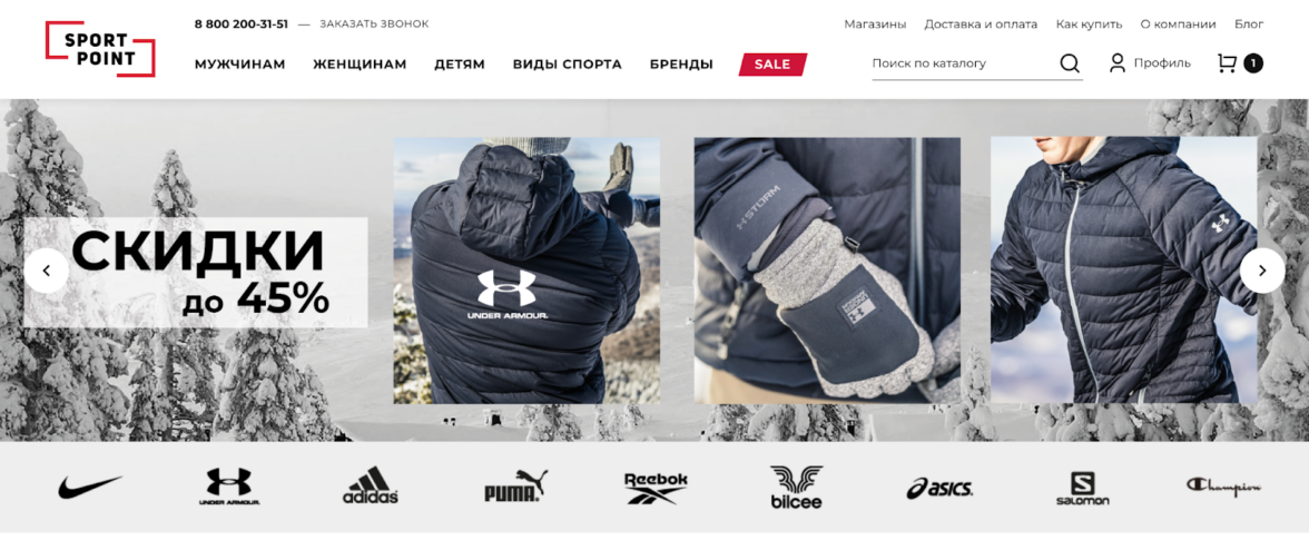 Помимо одного основного сайта sportpoint.ru через многосайтовость Битрикса был реализован еще один сайт для второго бренда компании — jnsonline.ru
