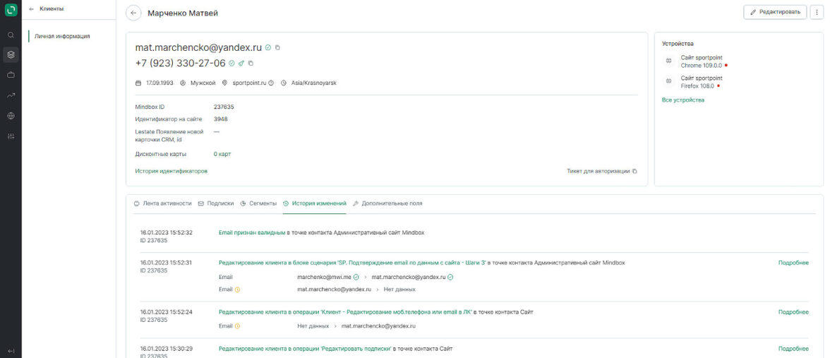 На основе этих данных на стороне Mindbox теперь возможно делать следующее:
