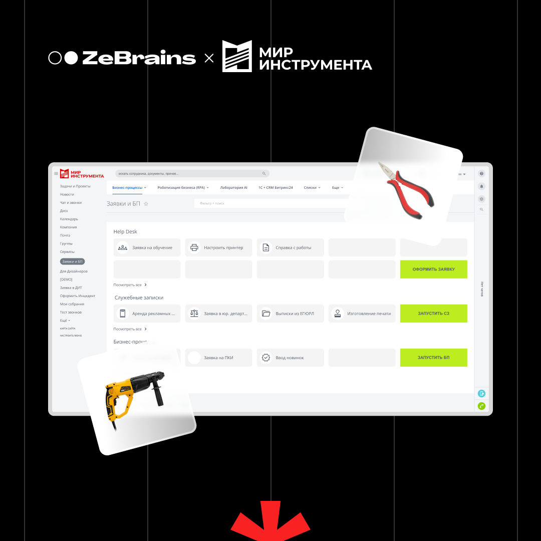 Команда ZeBrains внедрила систему «Битрикс24», кастомизировала основную функциональность портала в соответствии со всеми бизнес-процессами холдинга «МИР ИНСТРУМЕНТА».