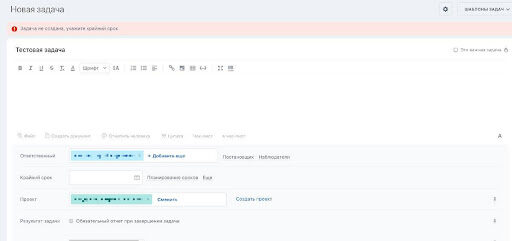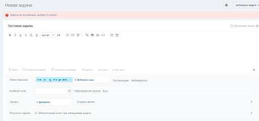 Логика заполнения полей. Некоторые стандартные функции заполнения полей на портале противоречили бизнес-процессам холдинга. Поэтому мы убрали добавление соисполнителей, создание задачи без крайнего срока и привязки к проекту. А если автор задачи отсутствует, то результат работы может принять руководитель проекта, его ассистент или другое лицо из списка, основанного на бизнес-процессах компании.