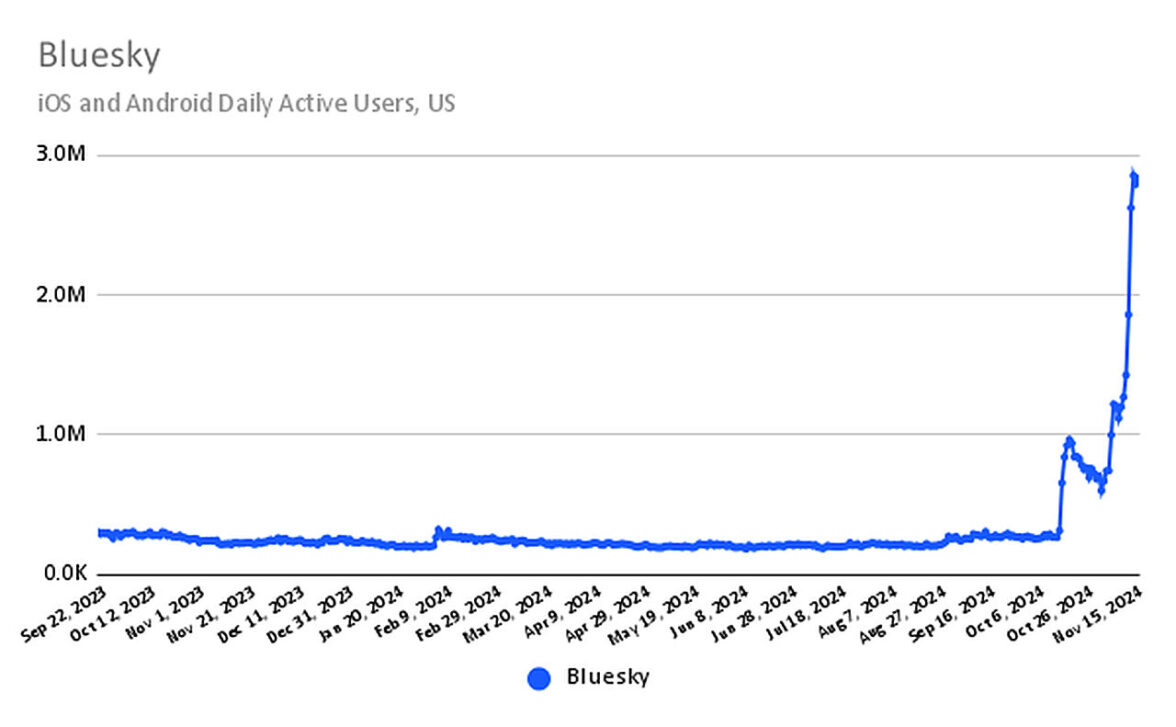 Социальная сеть Bluesky, созданная как более гибкая и комфортная для пользователей альтернатива X (бывший Twitter), не снижает темпов роста аудитории. ADPASS писал на прошлой неделе, что в Bluesky активно мигрируют поддерживающие демократов пользователи X. Владелец последней, Илон Маск, является одним из ближайших соратников избранного президента-республиканца Дональда Трампа и активно транслирует соответствующие взгляды, что раздражает либеральную аудиторию. К тому же Bluesky гораздо дружелюбнее к пользователям — алгоритмы, формирующие ленты обновлений, можно гибко настраивать под себя, а от общения с токсичными комментаторами и троллями легко оградиться.