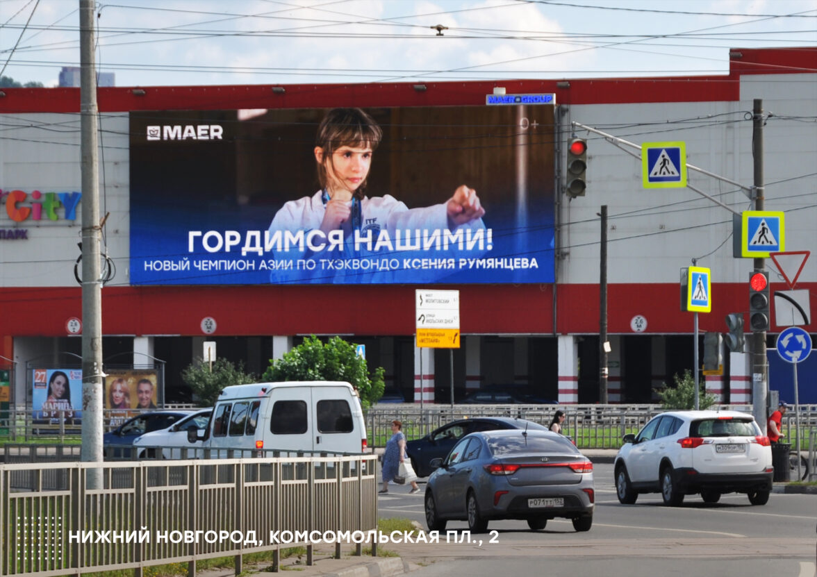 Медиахолдинг MAER превратил крупноформатные экраны в триумфальные арки ради новой чемпионки Азии по тхэквондо
