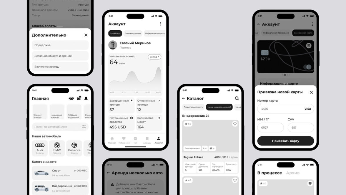 Когда аналитика завершена и все решения согласованы, наступает этап проектирования. Создается черно-белый прототип — «скелет» будущего приложения.