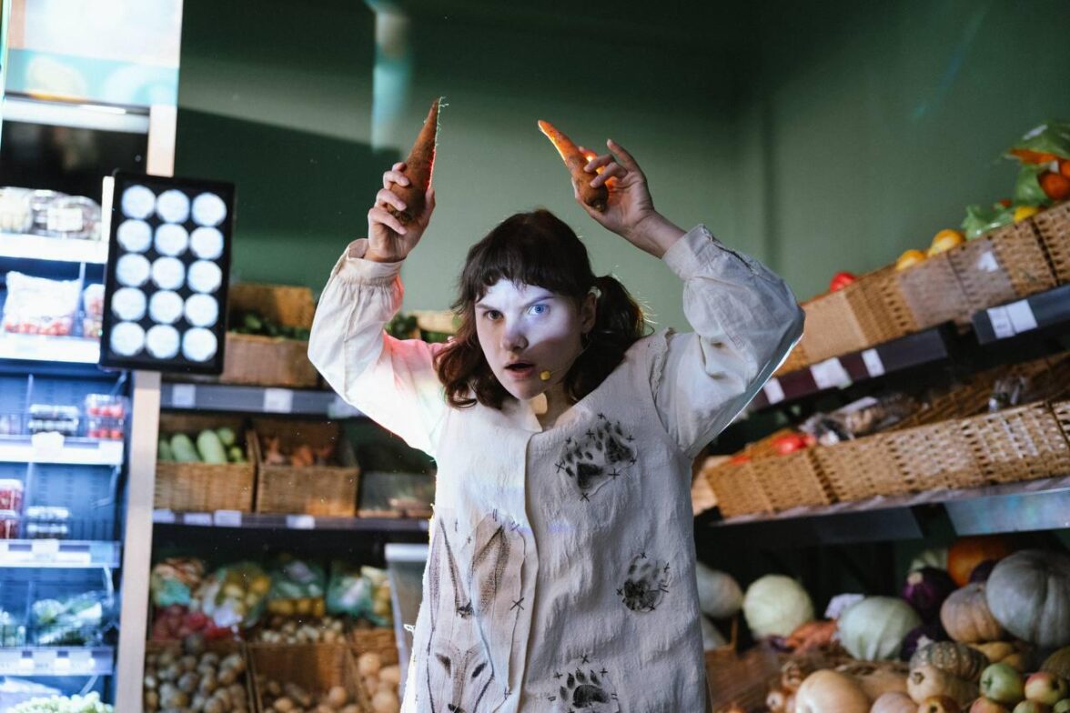 В финале прямо на глазах у публики Серафима Красникова испекла своего «Колобка» — хлеб-портрет, вынутый из печи с пылу с жару. Этот момент стал кульминацией спектакля и подарил зрителям редкий опыт: в супермаркете, где обычно покупают продукты на ужин, ожила настоящая театральная история.