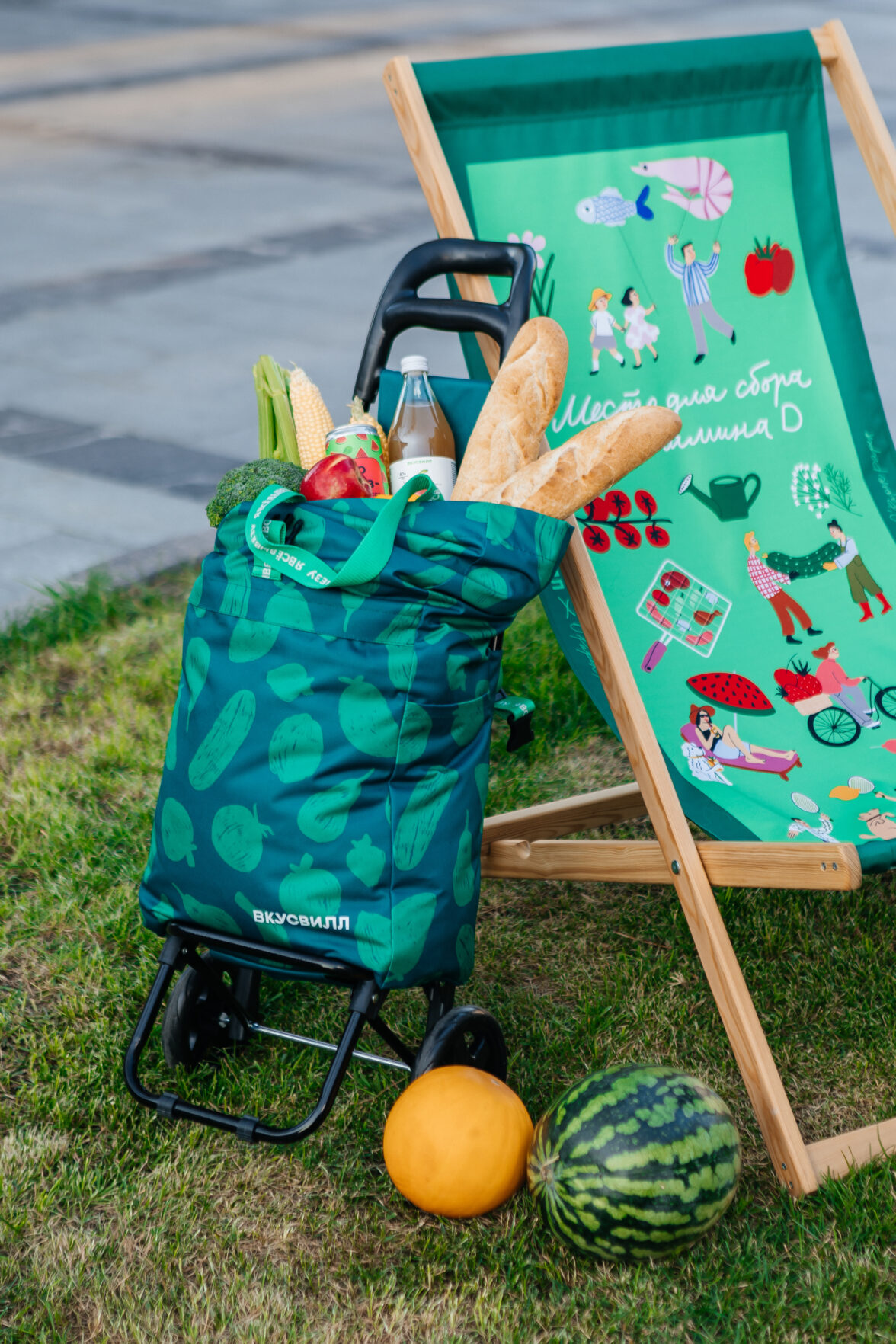 Во всём мире широко распространена практика ходить в магазин с сумкой-тележкой, потому что это удобно и практично. ВкусВилл решил, что для того, чтобы покупатели могли легко унести с собой все вкусные покупки и тонну манго, необходима подобная сумка.