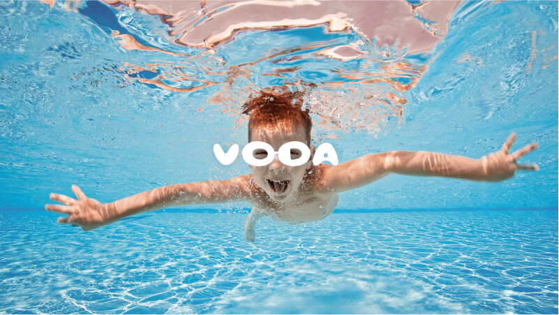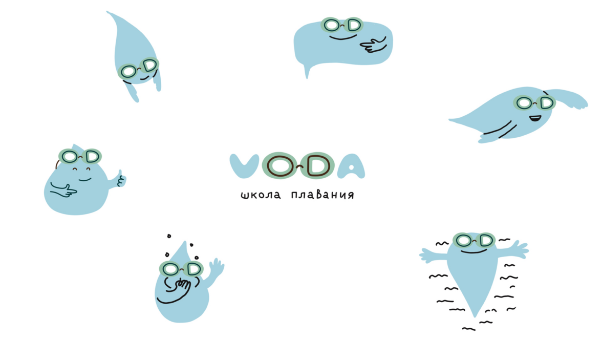 В самом названии «VODA» мы нашли символ, который идеально передает суть нашего проекта. Буквы «O» и «D» расположены рядом, и их форма напоминает очки для плавания — незаменимый атрибут каждого пловца. Эти очки не только функциональны, но и сразу ассоциируются с безопасностью и уверенностью в воде. Взглянув на логотип, сразу понимаешь, что перед тобой детская школа плавания, где заботятся о каждом ребёнке.