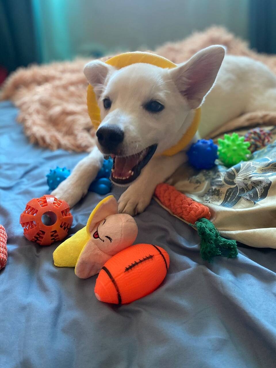«Давайте знакомиться! Я Лаки, мне почти 9 месяцев. Считаю, что могу принести пользу нашей компании в сфере клининга, так как у̶б̶и̶р̶а̶т̶ь̶ ̶с̶в̶о̶и̶ ̶и̶г̶р̶у̶ш̶к̶и̶ убираться и наводить порядок — моё истинное призвание. Возможно, вам будет проблематично найти, что где теперь лежит… В этом поможет взгляд с̶ ̶в̶ы̶с̶о̶т̶ы̶ с другой стороны».