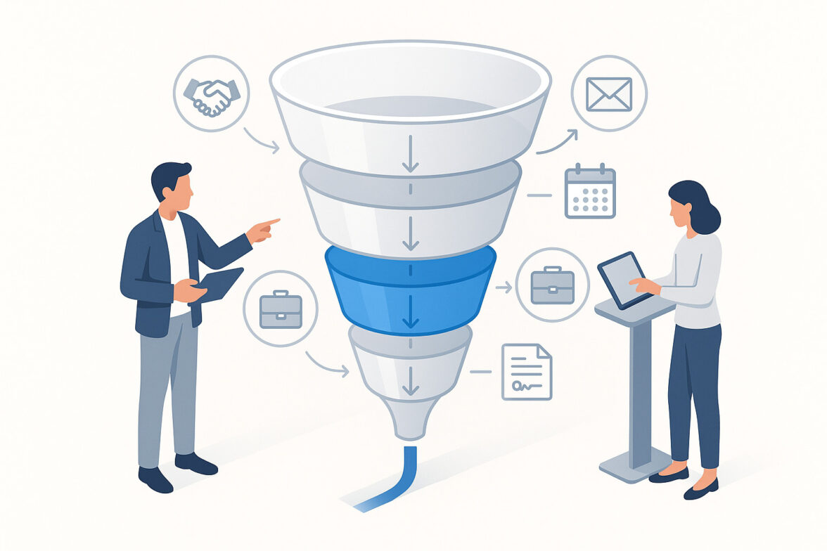 Воронка продаж — это путь, который проходит клиент от первого знакомства с брендом до покупки и повторных заказов. Она называется «воронкой», потому что на каждом шаге часть посетителей естественно отсеивается, а поток сужается к финальной конверсии. По сути, это не просто схема, а способ мышления: вы смотрите на процесс глазами клиента и пошагово оптимизируете опыт.