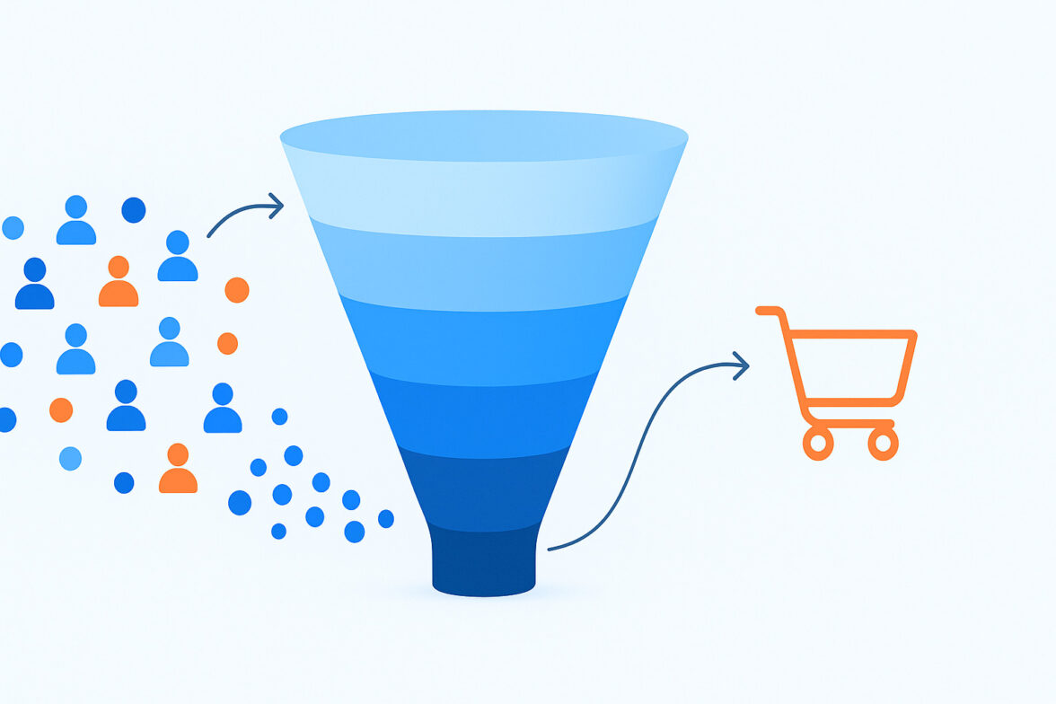 Представьте, что у вас большой поток посетителей. Воронка помогает превратить этот поток в покупателей: вы понимаете, где теряются люди, и что мешает им сделать следующий шаг. Такой подход заменяет фокус на «общей конверсии сайта» на фокус между этапами и даёт прогнозируемый рост.