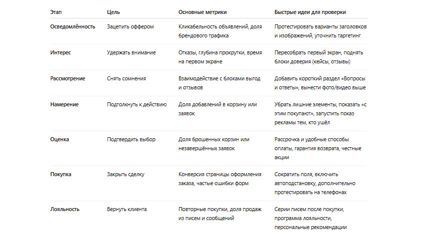 Стабильный рост продаж появляется, когда вы управляете не трафиком в целом, а переходами между шагами воронки. Видьте, где люди уходят, формулируйте по три конкретные гипотезы на самое узкое место, проверяйте два варианта страниц и фиксируйте результат. Особое внимание — телефону и странице оформления заказа: скорость, простые формы, понятные условия оплаты и доставки. Постоянно повторяйте цикл «измерить → улучшить → масштабировать» — так трафик превращается в прогнозируемую выручку и в большее число повторных покупок.