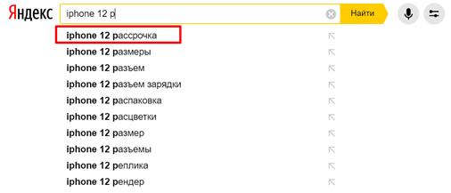 Исходя из популярности поискового запроса в Яндексе, рекомендуем использовать ключевые слова с приставкой «рассрочка» для новинок и моделей с высокой стоимостью.