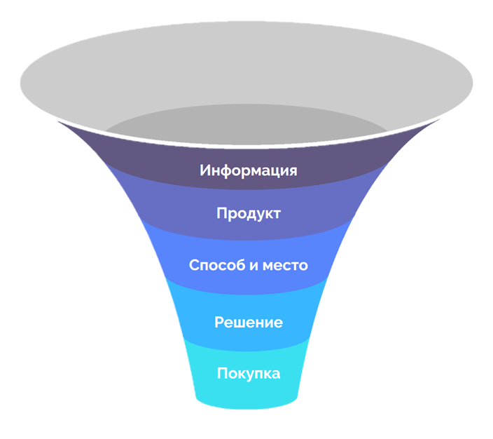 Эти наименования являются условными для простоты восприятия и оценки различий среди ключевых фраз. А потом распределили их по этапам воронки продаж с учётом потребностей пользователя на каждом шаге.
