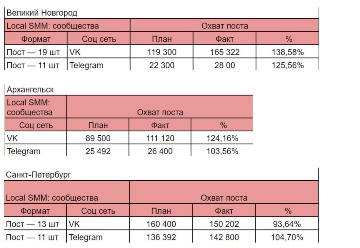 В результате после запуска таргета в ВК и Telegram фактические охваты просмотров были перевыполнены.