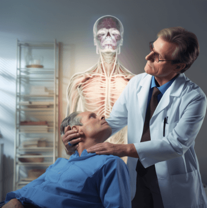 Второй клиент — клиника ортопедии и неврологии. Запускалась контекстная реклама, возраст целевой аудитории — 50+. Необходимо было показать пожилого человека на приёме у врача.