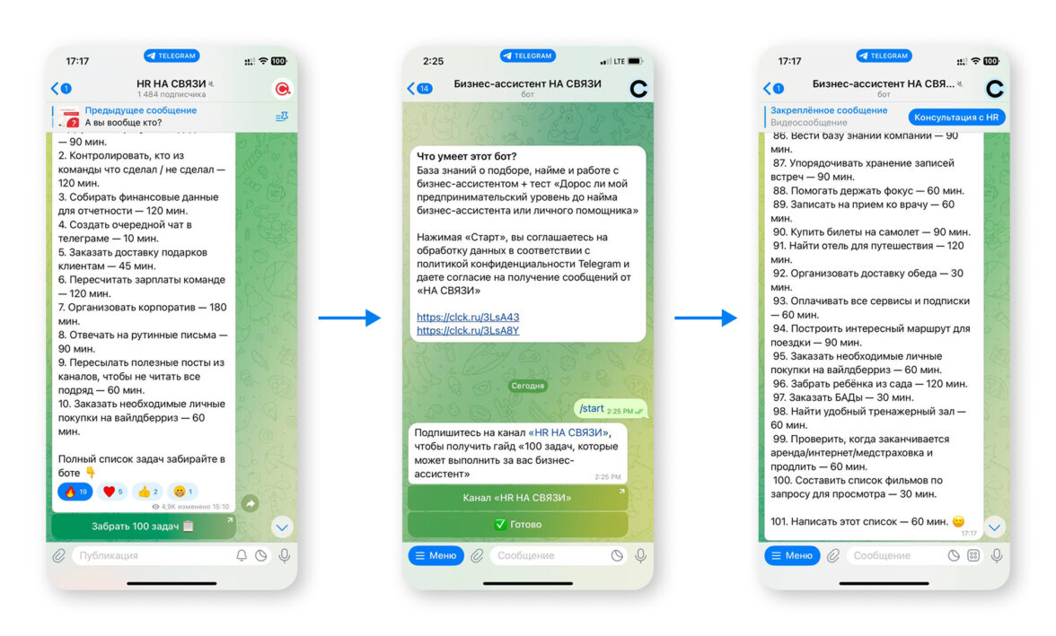 Обожглись: Мы сделали бота «100 задач для бизнес-ассистента» для HR-канала. С рекламы вели на пост, а из поста — в бота, который требовал подписку, чтобы отдать полный список.