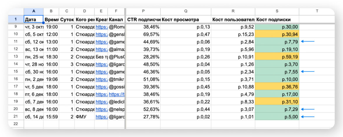 Стоимость подписчика сильно зависит от контекста: начиная от продукта, заканчивая тем, кто ведёт канал — бренд или автор. Например, люди охотнее подписываются на других людей, чем на компании, просто потому что личность интересует больше, чем логотип. Мы чаще всего работаем с брендами, поэтому будем опираться на цифры в этих условиях.