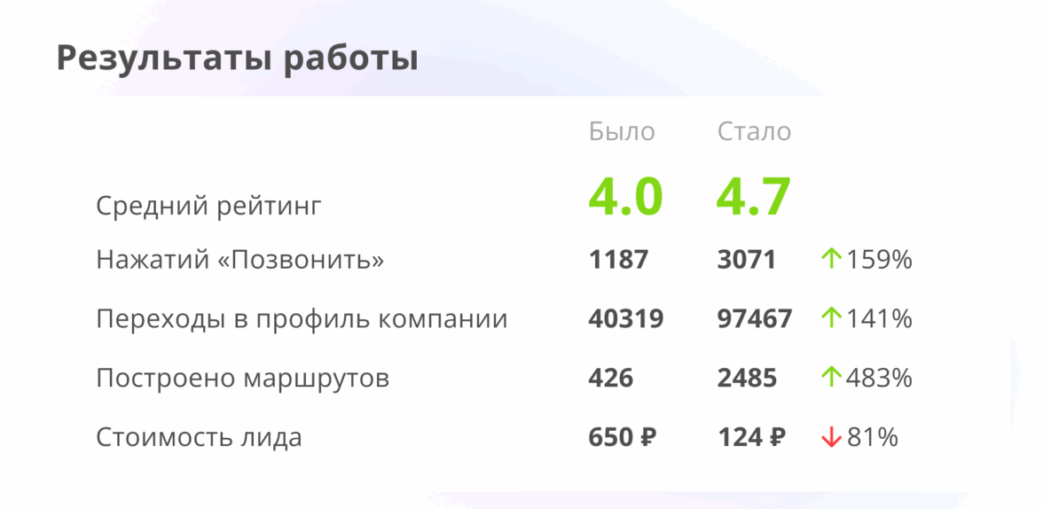 Результаты говорят сами за себя: если раньше около 35% отзывов о клинике были негативными, то после внедрения скриптов и новых процессов этот показатель снизился до 4–5%. А вместе с этим заметно вырос средний рейтинг на ключевых площадках.