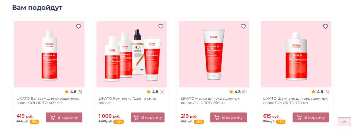 После раздела с отзывами мы добавили «Рекомендуемое» — это еще один инструмент допродажи.