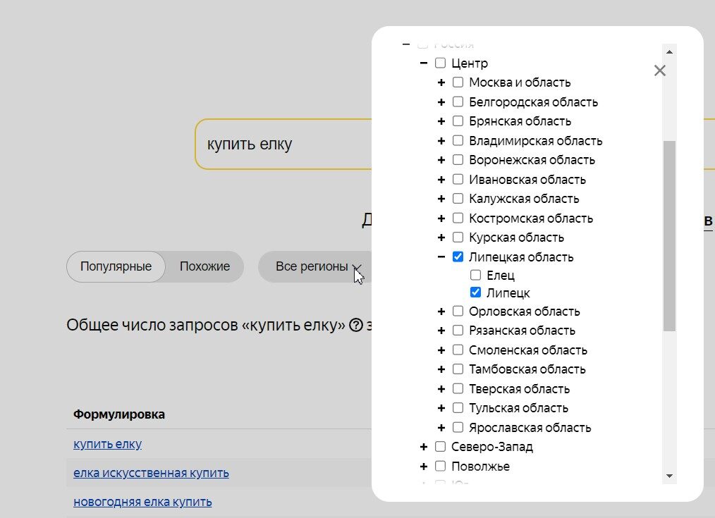 В октябре 2023 Яндекс представил новую версию сервиса подбора слов. В нем вернули возможность собирать ключевые слова со статистикой по регионам.