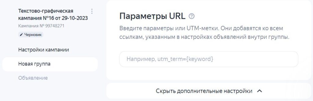 В 2022 году в интерфейсе Директа стало возможно добавлять параметры URL на уровне кампаний, что значительно облегчило настройку рекламы. Но метки на уровне кампаний имели приоритет над установленными в группах и объявлениях. Это затрудняло работу, так как часто в отдельной группе или объявлении нужно установить свои UTM-метки.