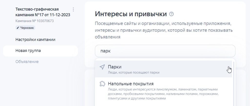 Доступны «Интересы и привычки» только в РСЯ и «Мастере кампаний».