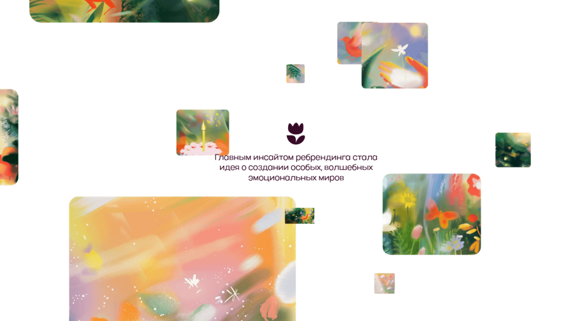 Гибкая айдентика Flowwow — миры, которые могут отражать абсолютно разные ситуации, настроение, продукты визуально склеивает разные категории подарков — от цветов до сладостей — в единый эмоциональный опыт. С помощью AI-генераций получается масштабировать бренд-контент без потери уникальности, а это снижает операционные издержки при росте.