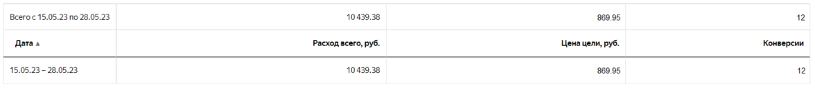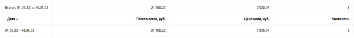 Ничего не предвещало беды, но майские праздники сбили тонкие «душевные» настройки искусственного интеллекта. Если ранее мы получали 6–7 лидов в неделю с CPL около 800–900 р, то за первые две недели мая мы получили всего 3 заявки с ценой 7036.07 за лид!