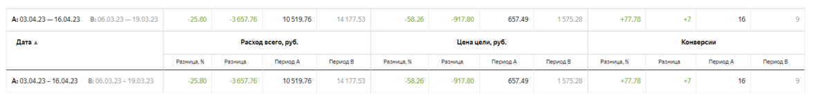 Спустя месяц после введенных корректировок, стали заметны результаты. Ниже представлены показатели работы РК за 2 недели до введенных корректировок и через месяц после.