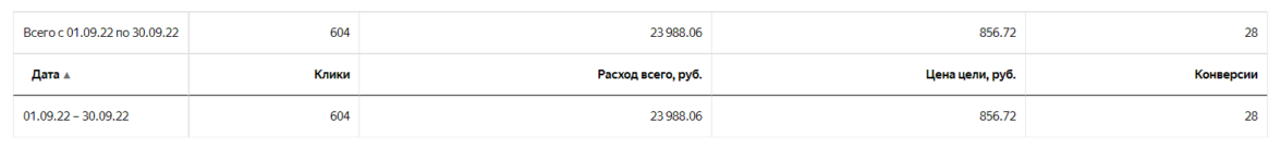 Ниже приведены результаты работы рекламных кампаний за август 2022 по задвижкам диаметра меньше 500 мм и соответственно свыше 500 мм. На скриншоте видно, что РК с большими задвижками принесла всего 2 лида по огромной для этой ниши CPL — 7500 р!