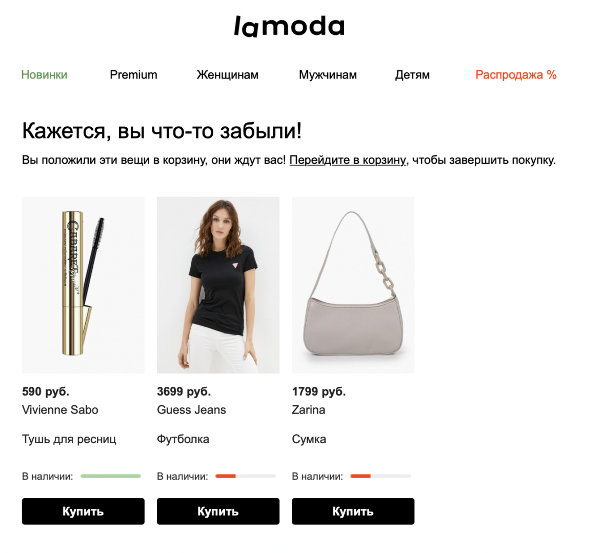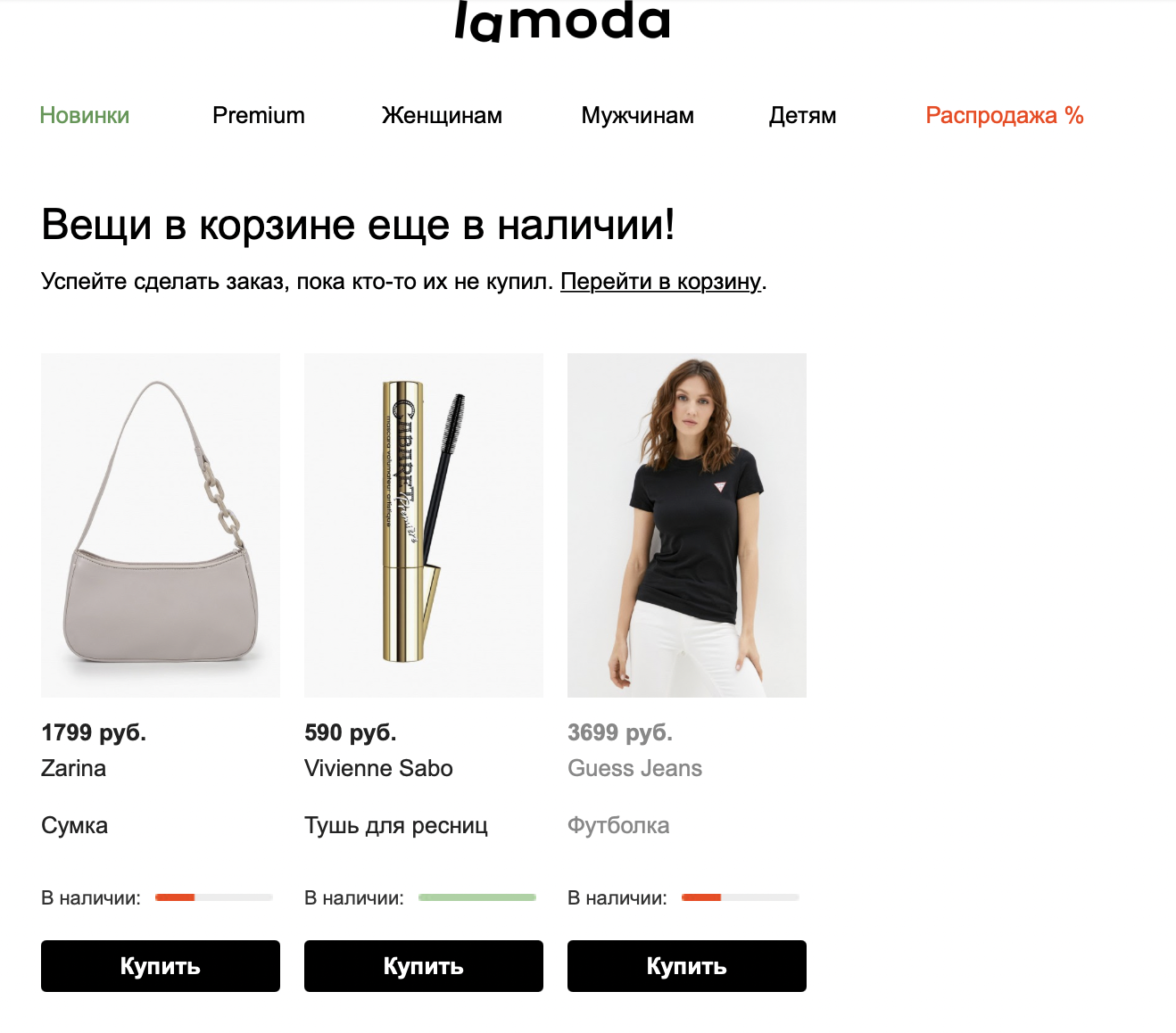 4. Email с товарами, но триггером упущенной выгоды на следующий день.